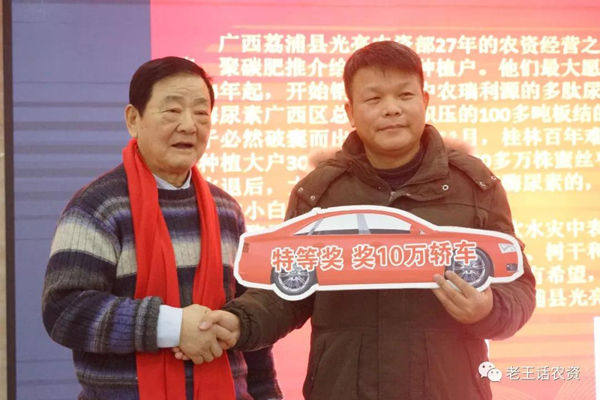 1月12日,以“赋能•创新”为主题的“2018年度中农瑞利源年会在驻马店”如期召开。会上,广西荔浦阳光农资经营部总经理阳光亮因推广中农瑞利源聚碳尿素成绩突出获得价值10万元轿车一辆。与此同时,驻马店浩马益农植保有限公司获得价值6万元轿车一辆,还有12位渠道商获得年度优秀奖。阳光亮分享获奖感言时激动地说:“中农瑞利源聚碳双酶系列肥不仅可以治愈砂糖橘黄化病,产品还具有药肥双重功能,肥效完全可与进口肥相媲美,但价格远远低于进口肥。这是一款有爱心的产品,值得我们经销商推广,也值得广大种植户放心使用。”