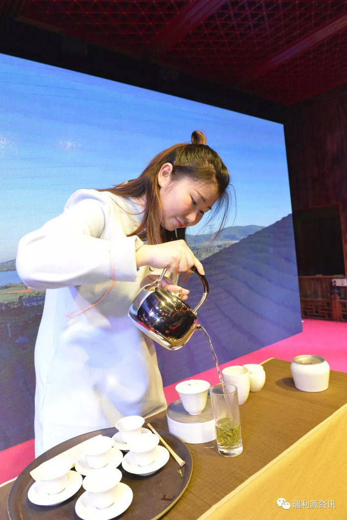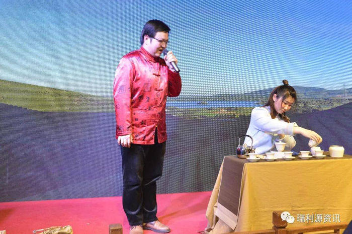 会上,来自长兴和平庭富农药经营部的工作人员进行了茶艺表演。
