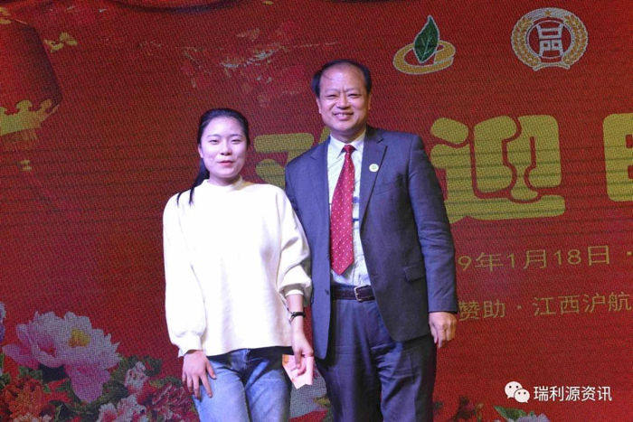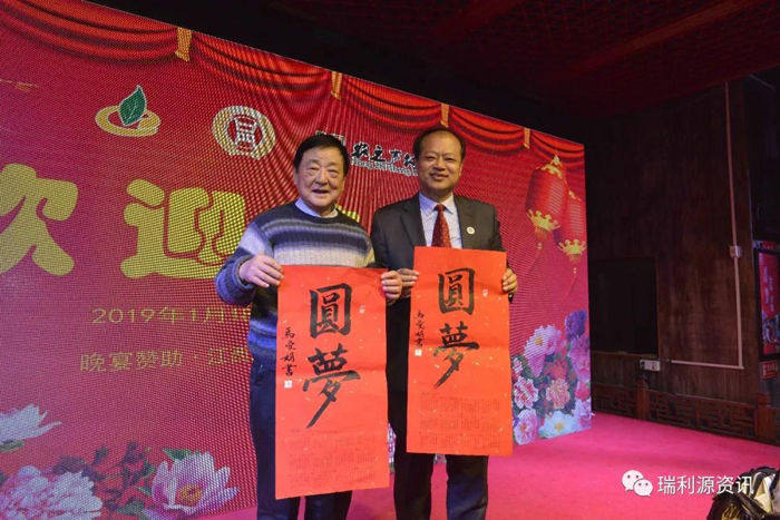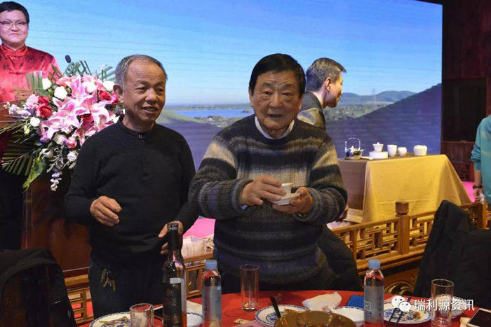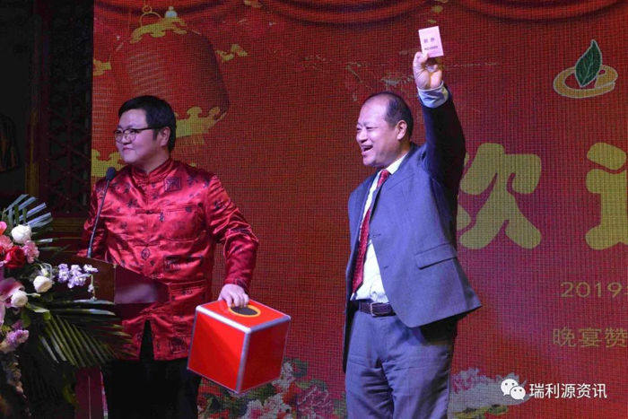 苏银才总经理(右)与瑞利源特供酒获得者